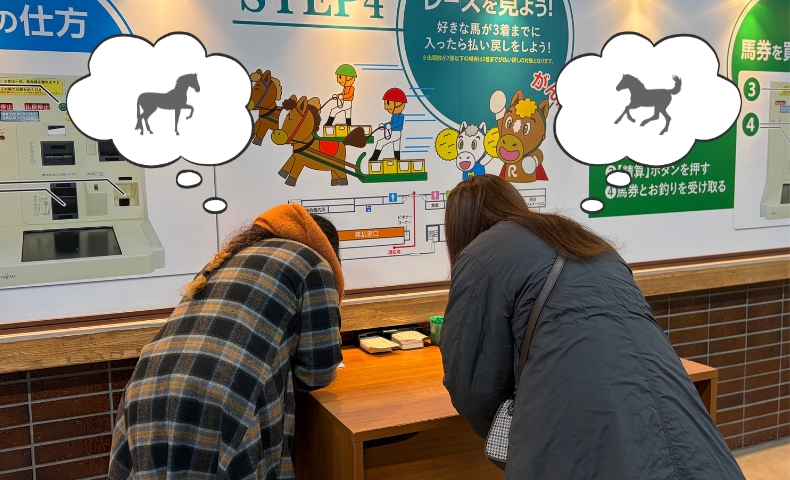 馬券購入は手順が多く、初めてだと戸惑うかもしれません。もし、馬券を買い慣れていない人が多いならば、前のレースの開催に合わせて来場して、手順を予習しておくと安心です。