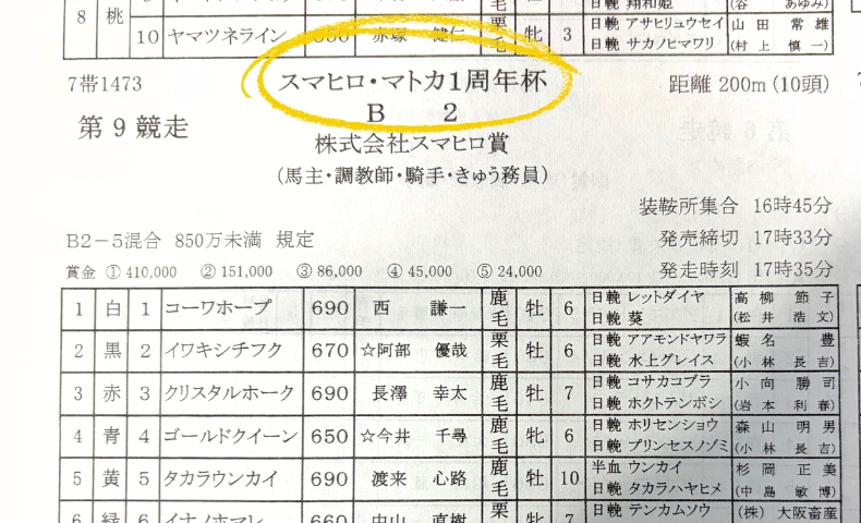 メンバーのほとんどが競馬初心者。『スマヒロ・マトカ1周年杯』まで少し時間があったので、馬券購入の予習がてら、別の協賛レースに参加してみました。