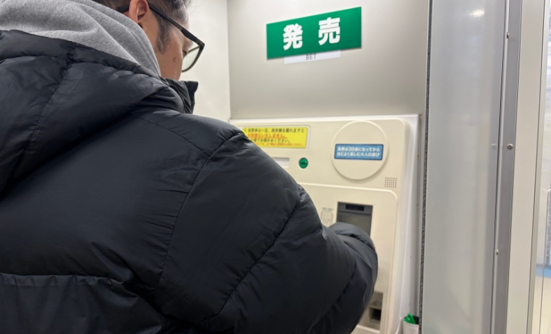 券売機の前でワタワタ。お金を入れて→マークカードを入れる手順が、慣れていないと普通に焦る