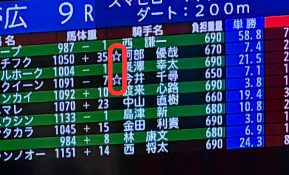 ここで私が気になったのが、騎手名の横に付いている「☆」マーク。