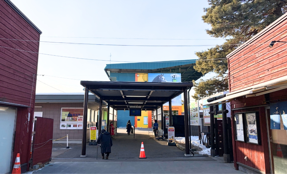 帯広競馬場へは、観光スポットとしても人気の「とかちむら」を抜けて入場できます。