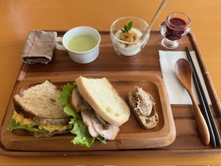 北海道のチーズやハムを、日替わりのパンに添えてシンプルに味わえるメニュー。自家製ジュースやヨーグルト、スープ、牛乳も付いており、コスパの高さも魅力です。