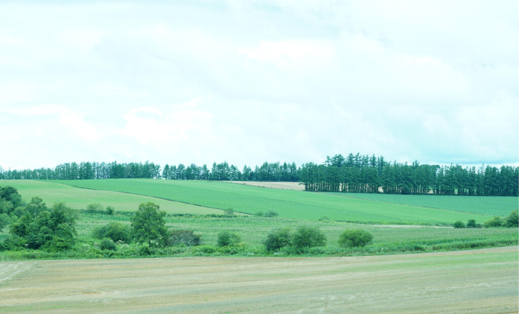 果てしなく続く畑や牧場、空の彼方に望む大雪山系や日高山脈の山並みを堪能できる