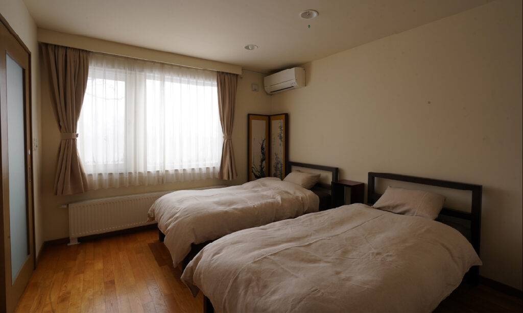 シングルとツイン、2つの部屋があり最大3名で宿泊できるメインハウス