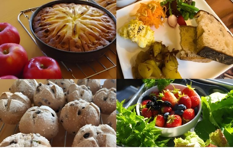 自家製パンと菜園野菜をふんだんに使った贅沢な朝食(メニュー例)