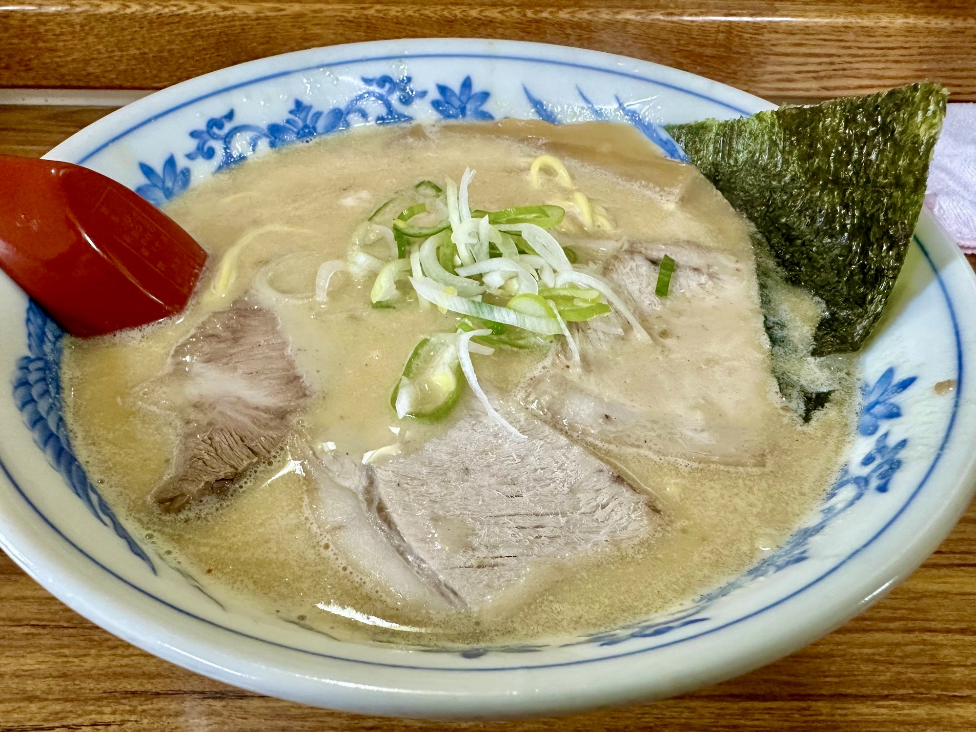 The surface shimmers with back fat, and as your spoon dips in, the sweet marrow and bonito aroma rise in unison — a sensory explosion. The noodles are thick, straight, and custom-made, with a chewy texture that clings to the fatty broth for a full-flavored bite.