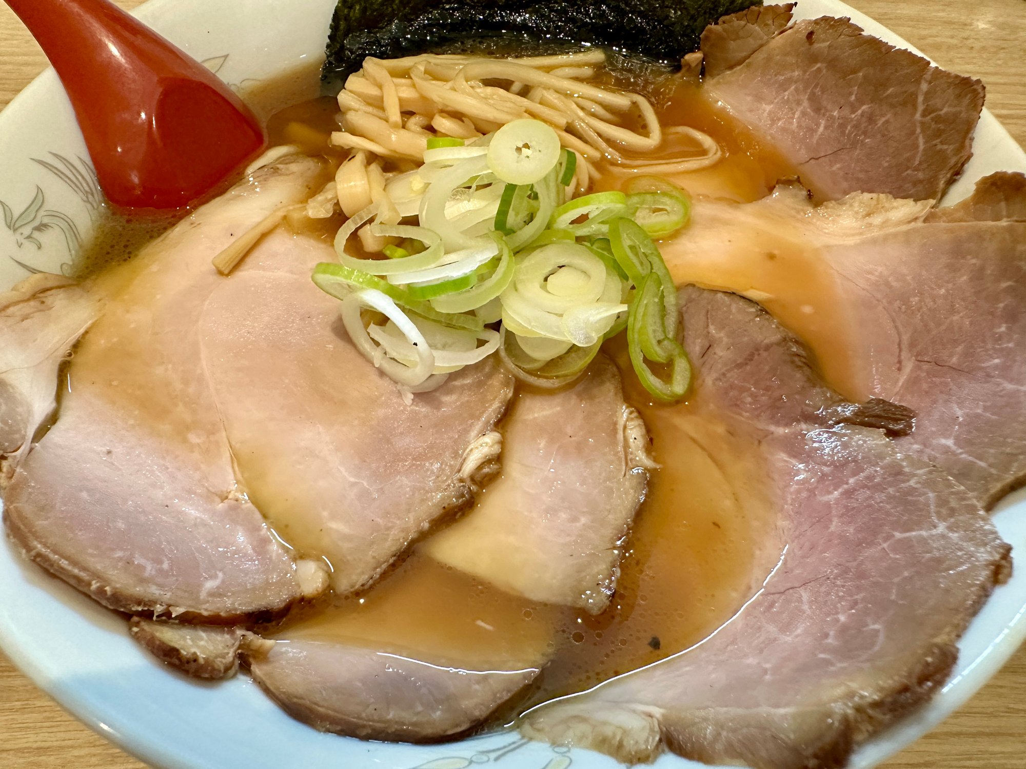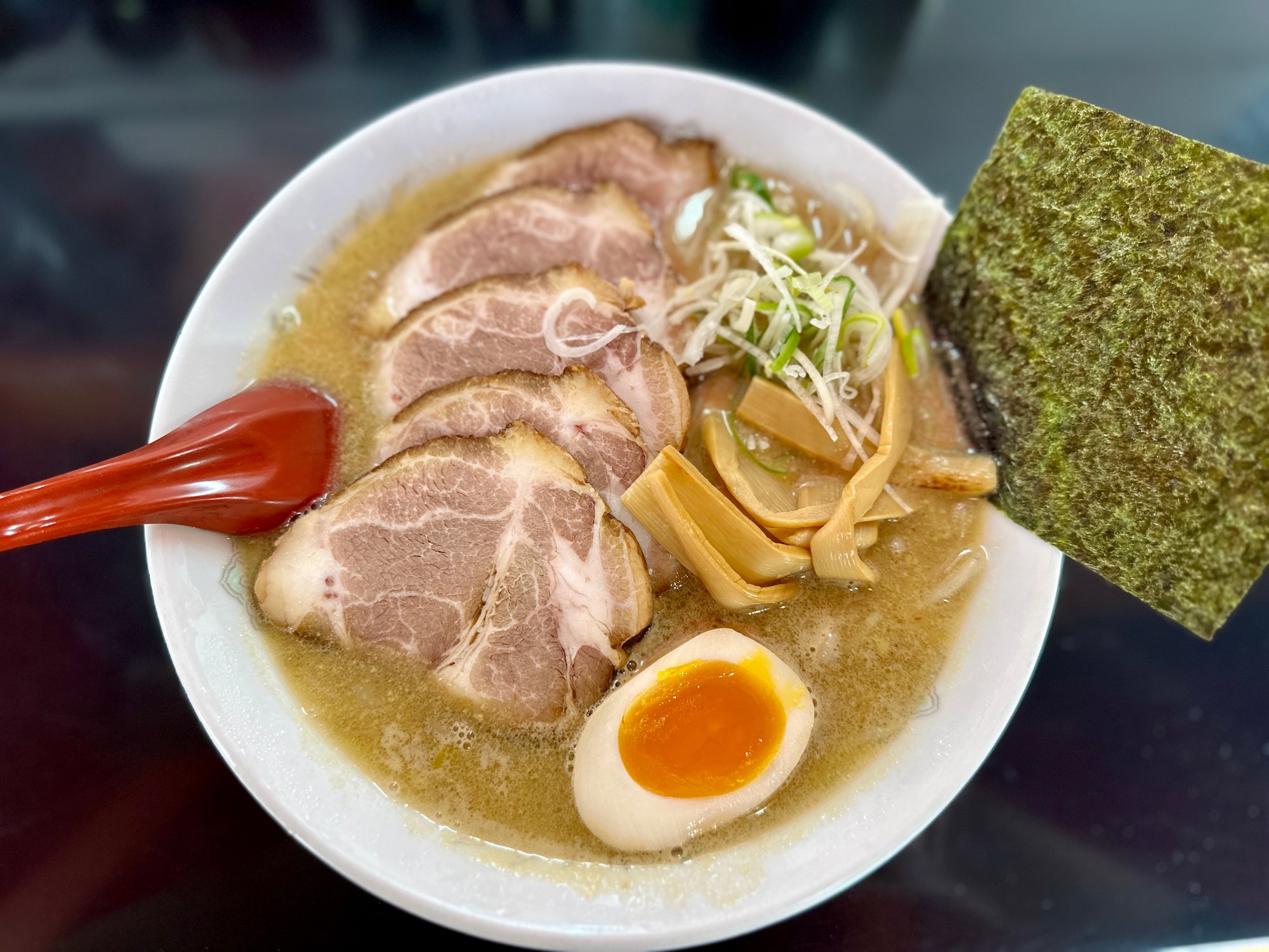 The custom-made medium-thick straight noodles from Nishiyama Seimen are cooked al dente to retain firmness. As the noodles loosen in your mouth, a hint of dried fish lingers in your nose. The shoulder roast chashu is seared on the outside and juicy on the inside, while the thick-cut bamboo shoots offer a satisfying crunch. Dissolving the seaweed in the soup further enhances the sweetness of the broth.