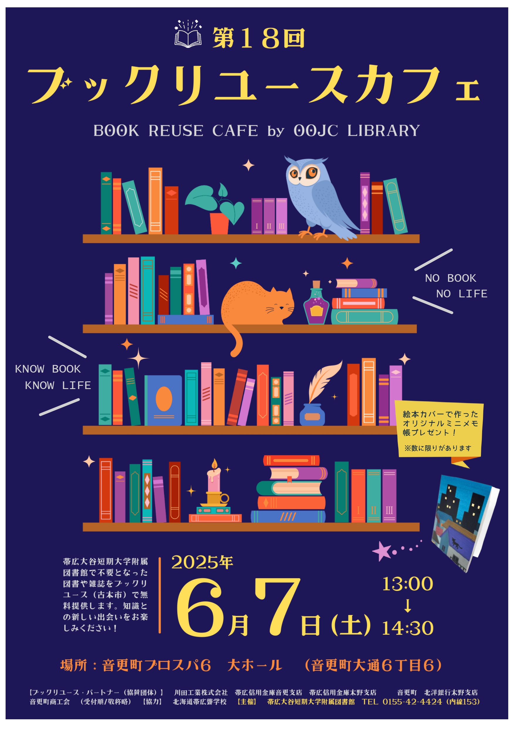 読み終えた本が次の読者へとつながる――そんな素敵な循環を生むイベント「第18回 ブックリユースカフェ」が、6月7日(土)に音更町プロスパ6 大ホールで開催されます。主催は帯広大谷短期大学附属図書館。図書館で不要となった本や雑誌を自由に持ち帰れる古本市形式のイベントで、小説や漫画、文庫、雑誌など、幅広いジャンルの本が並びます。
