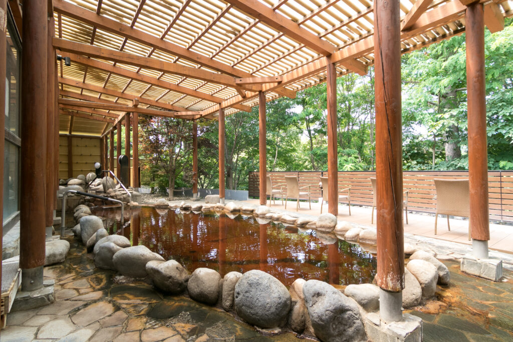 ホテルに併設された日帰り温泉「華のゆ」も地元客を中心に大人気です。日帰り・宿泊者どちらも利用できる1階の大浴場には、露天風呂、圧注浴「カムイ」など楽しみ方も多彩。心ゆくまでお風呂でじっくりと癒されてください。