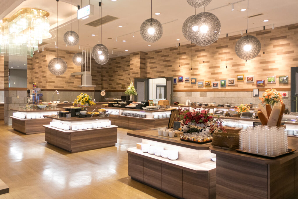 明るく彩られたレストランのなかに、四季折々の食材をふんだんに使った料理が並べられた様子は圧巻です。宿泊者の方に特別な「食」の時間を提供できるようにと、空間にもこだわりが感じられます。
