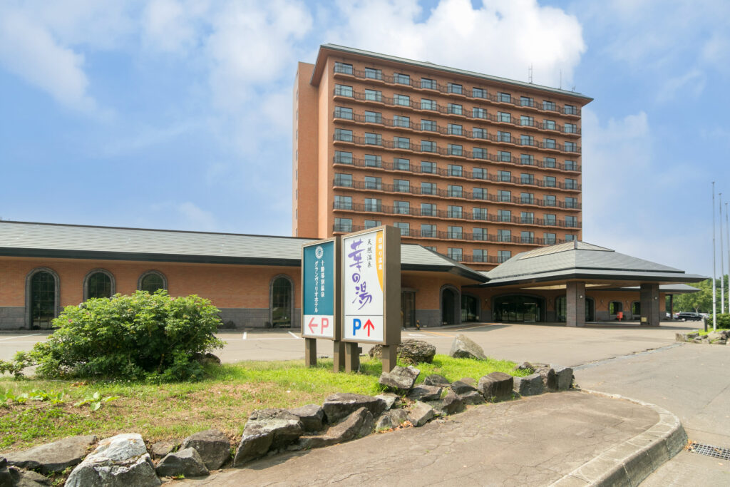 十勝らしい景色が続く高台の上に、落ち着いた雰囲気のホテルが宿泊者を迎え入れてくれています。周りに目立った建物はなく、遠くからでも感じられる存在感。十勝の広い大地を見渡せる贅沢な場所に十勝幕別温泉 グランヴィリオホテルがあります。