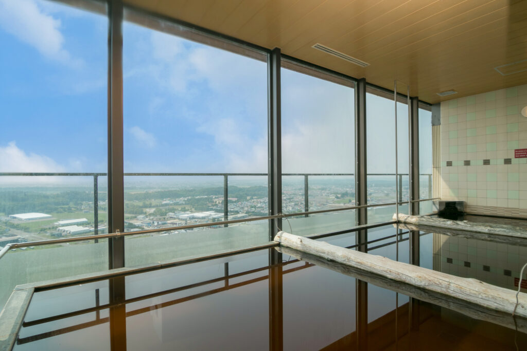 宿泊者限定の12階展望大浴場からは、眼下に広がる夜景や星空を眺めながらの入浴が楽しめます。