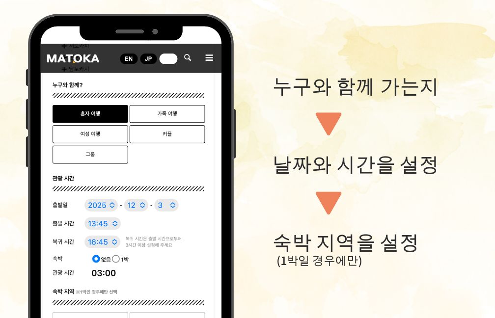 2025년 12월 1일, MATOKA에 새롭게 추가된 기능인 “도카치·오비히로 관광 순환 플랜 검색”이 등장했습니다. 출발 시간과 장소, 관심 있는 스폿을 선택하기만 하면, 당신만을 위한 추천 코스를 자동으로 만들어주는 편리한 서비스입니다.