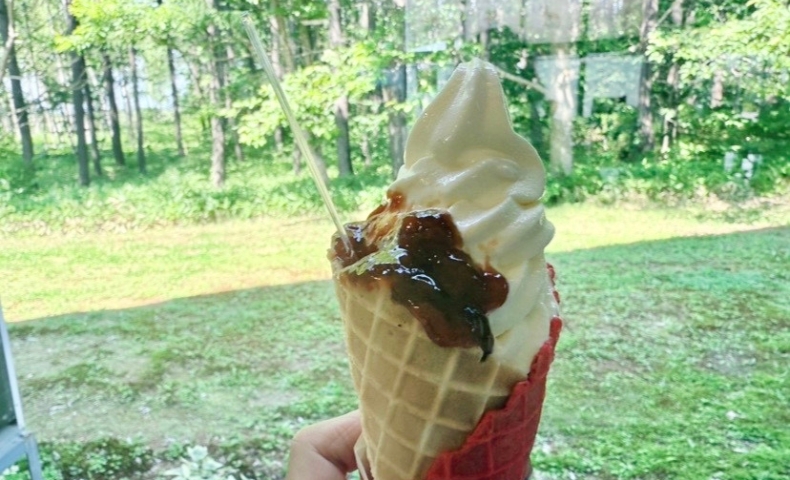 디저트로 추천하는 것은 사라베츠 특산 과일인 스모모(일본 자두)를 사용한 오리지널 상품들입니다. 달콤상큼한 청량감이 중독적인 ‘스모모 사이다’, 자가제 잼을 올린 ‘스모모 잼 소프트크림’이 특히 인기입니다.