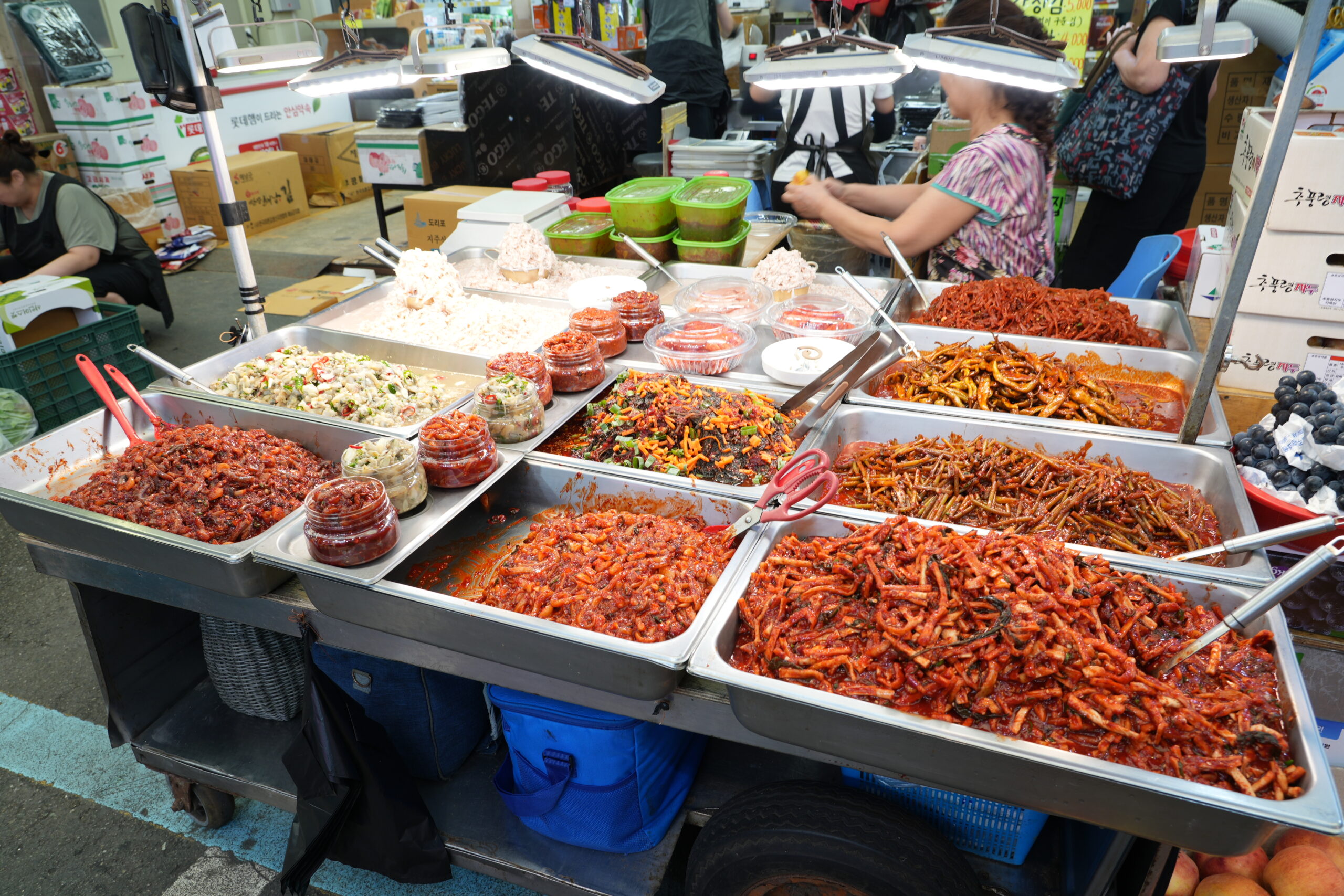 市場内には屋台や軽食店が多く、トッポギ・キンパ・チヂミなど気軽に食べ歩きを楽しめます。