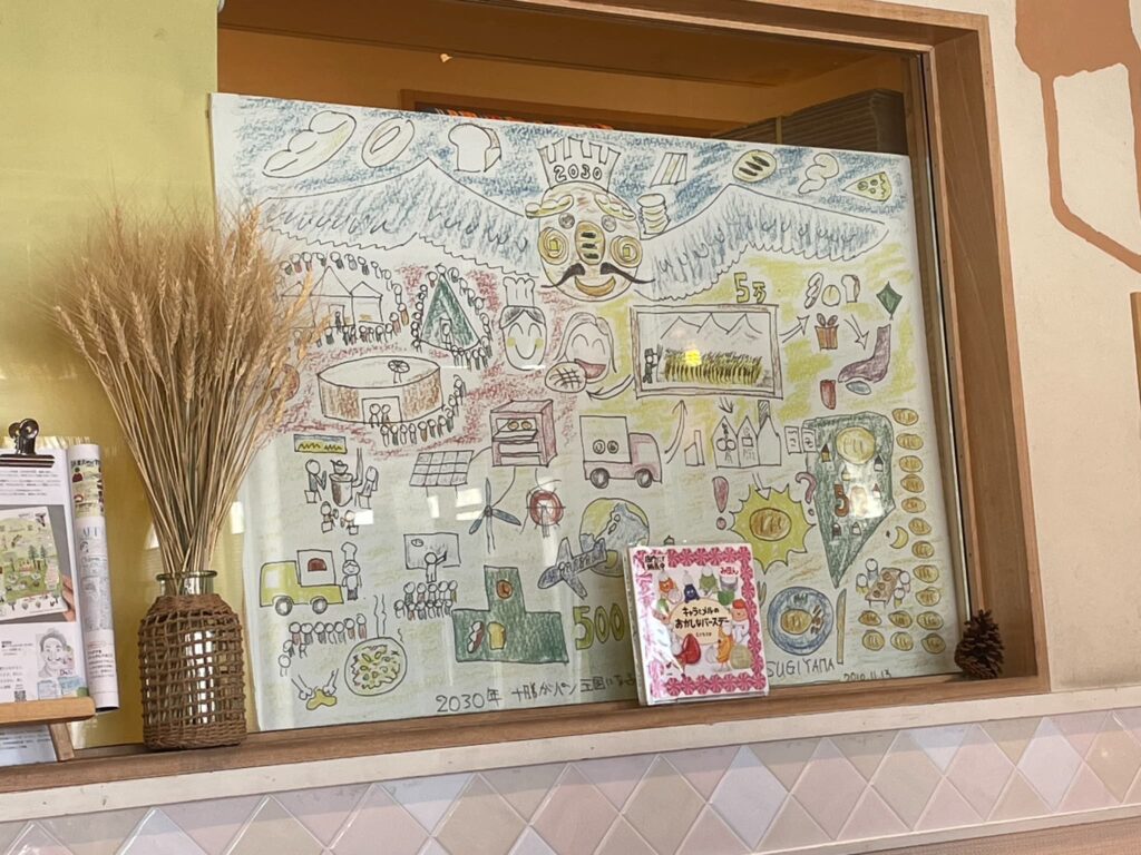 麦音にはパン王国を目指す杉山社長直筆の絵が飾られています