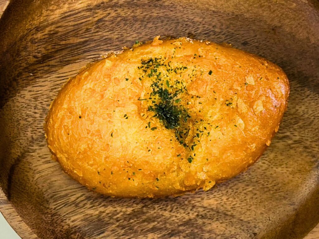 麦音で使われているのは、十勝・芽室産のブランド牛「未来めむろ牛」。ひと口かじると、牛肉のコクと旨みがじんわり広がり、辛さを抑えた自家製の欧風カレーがやさしく後を追いかけてきます。衣にコーンフレークを使っているのもポイント!時間が経ってもサクサク感が続くので、少し時間が経ってもおいしく食べられます。