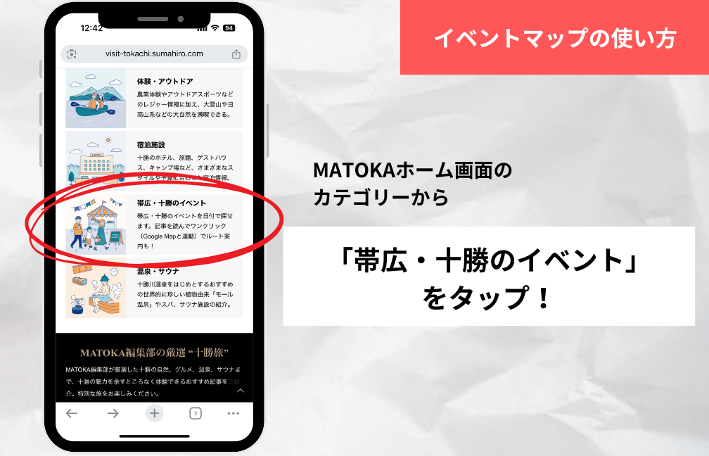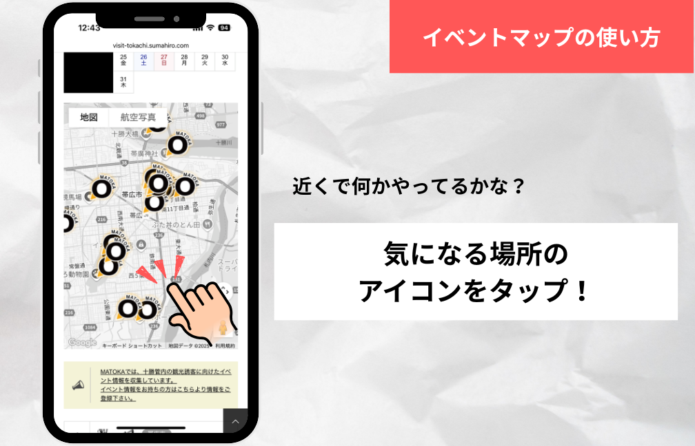 STEP①:MATOKAの「帯広・十勝のイベントMAP」にアクセス