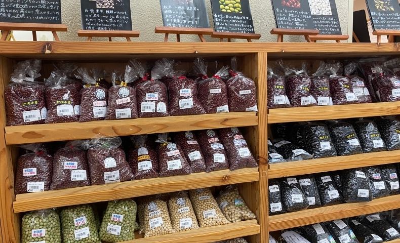 豆のまちとして知られる本別。特設コーナーでは本別産の豆がずらりと販売されていました。