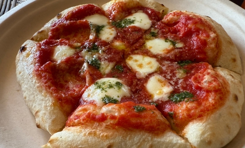 「マルゲリータピザ(1,300円)」は、十勝産小麦を使ったもちもち生地と、爽やかな酸味のトマトソースが絶妙にマッチ。焼きたての香ばしさもたまりません。