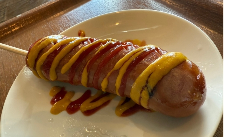 続いて「木かげのカフェ」では、モール温泉水を飲んで育った「モール豚」を使ったビッグフランク(450円)も堪能。噛むたびにあふれ出す肉汁と旨味に、満足感もひとしおです。