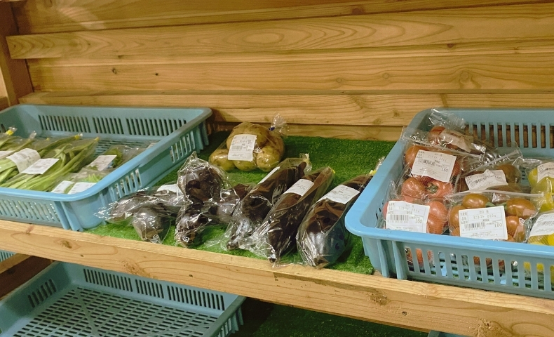 採れたての浦幌産野菜が並ぶ直売所。旬の味覚を手軽に購入できる。