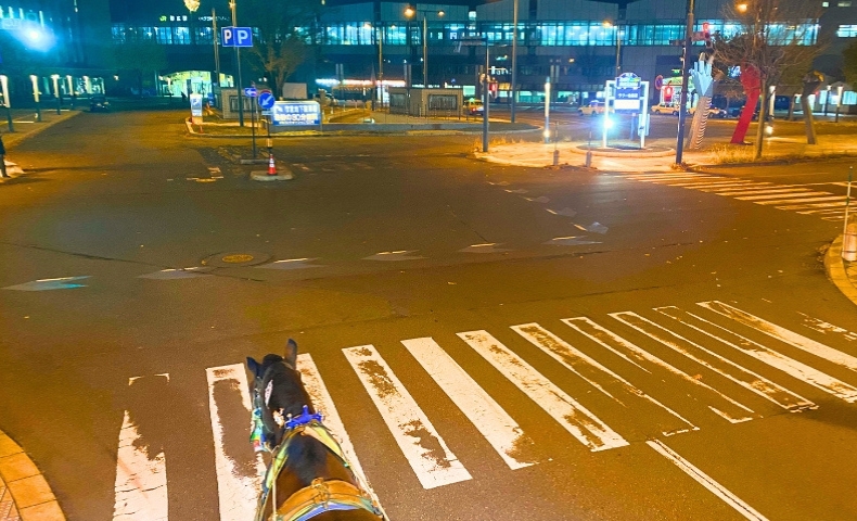 馬上から眺める街の灯りは格別で、蹄の音とともに広がる“帯広らしい夜景”は写真映えも抜群。