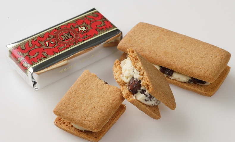 外せないのは、長年定番の「マルセイバターサンド」。ホワイトチョコ、生乳100%バター、カリフォルニア産レーズンを合わせた特製クリームをビスケットで挟んだ人気商品で、隠し味のブランデーが深みのある風味を生み出す逸品です。