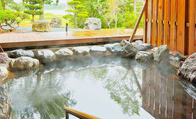中でも人気なのが、十勝川を望む庭園露天風呂。雪が静かに降る冬には「雪見風呂」が楽しめ、十勝ならではの美しい季節感を味わえます。