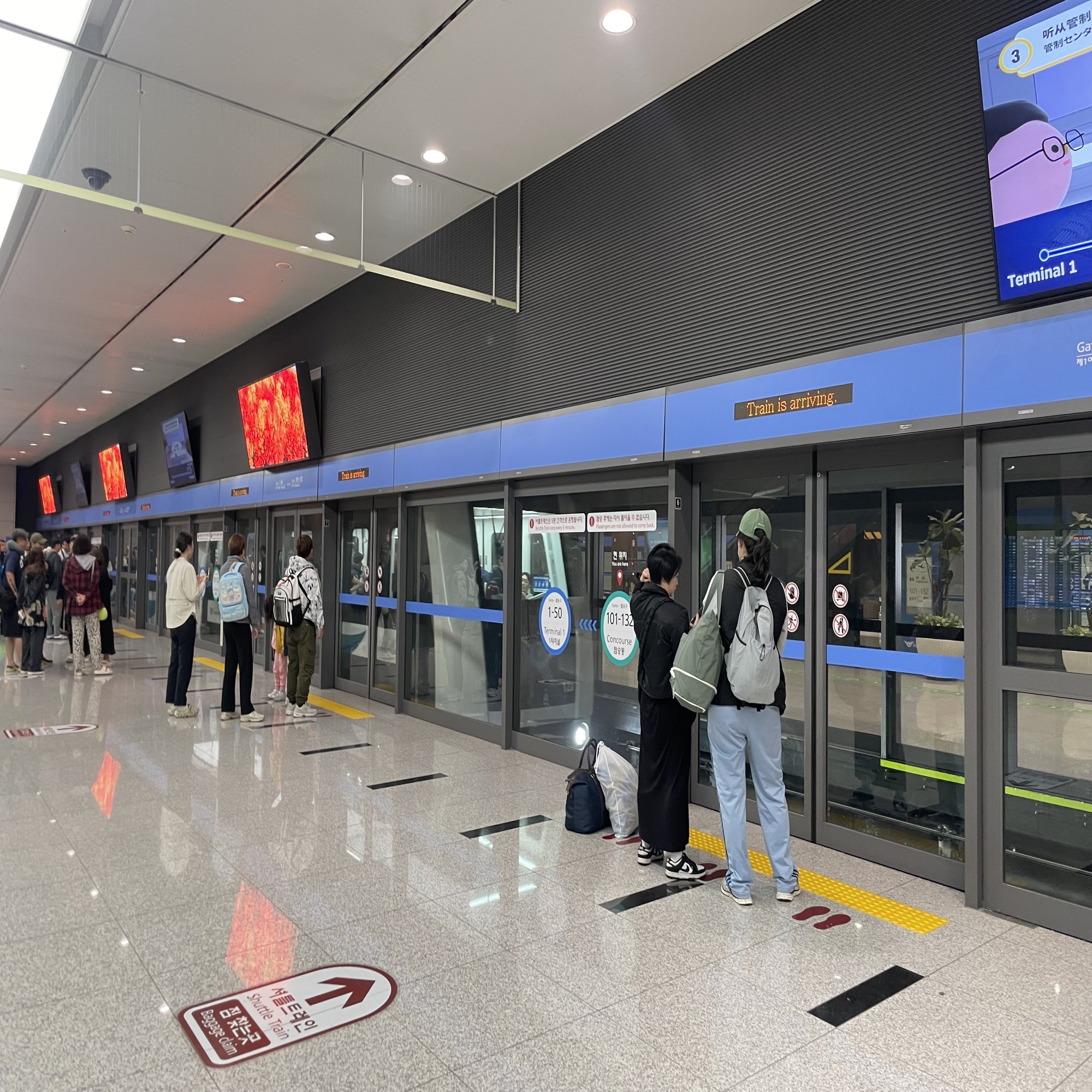 入国審査・手荷物受取場所までは空港内のシャトルトレインを使って移動します!