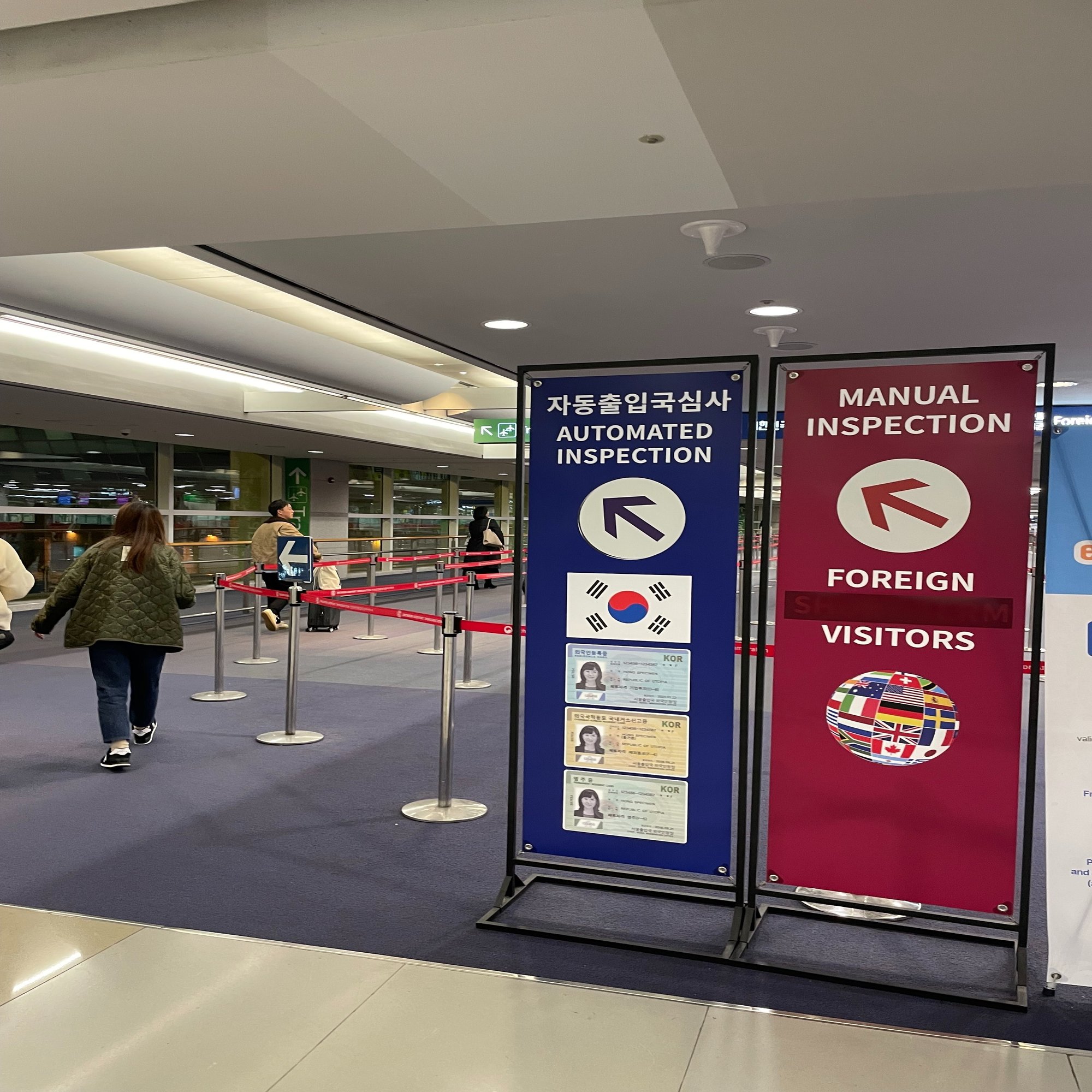 平日の夕方だったからか混雑はなく、入国審査の待機列は5分程度(仁川空港では珍しいほどスムーズ!)。機内で書いたアライバルカードとパスポートを渡して審査してもらいます。