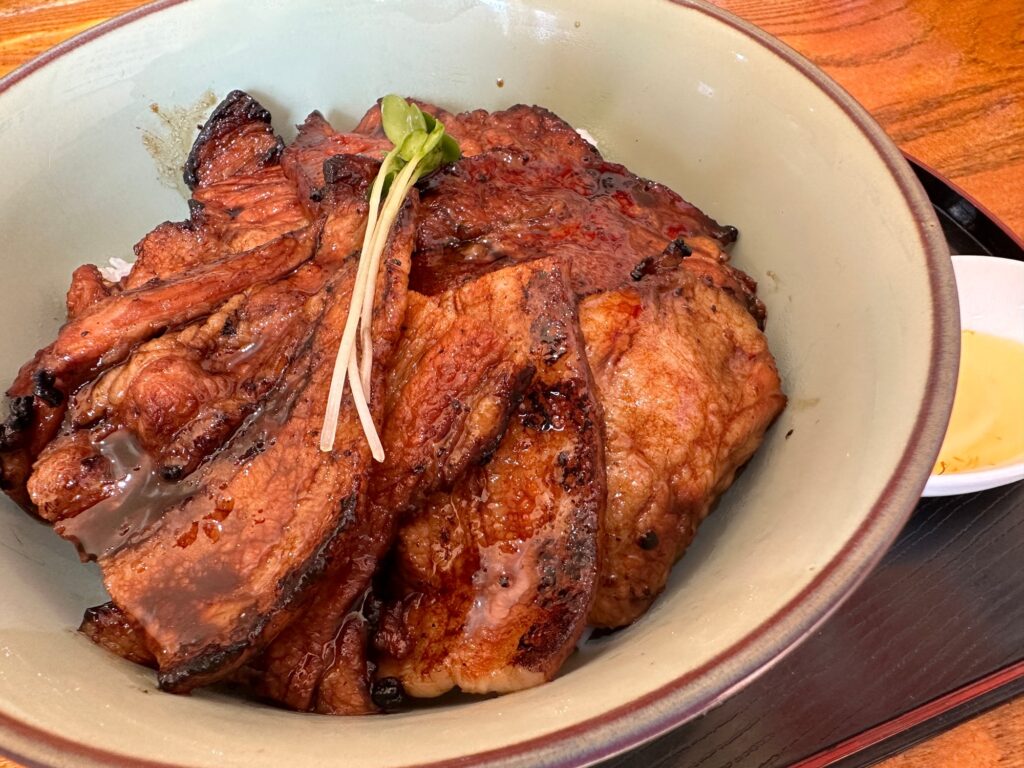 ぱんちょうでは、炭火の香ばしさと甘辛いタレが絡み合う伝統的な豚丼を味わえます。一口ほおばると、やわらかな豚肉の旨みとタレのコクがご飯と溶け合い、心とお腹が一気に幸せでフル充電。