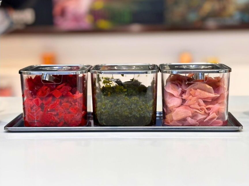 名前を知らない人が多いであろう「みどりのやつ」。その正体は、青じその実、大根、きゅうりを混ぜ合わせた漬物。これが美味しい!とたくさん乗せる人が多いです。