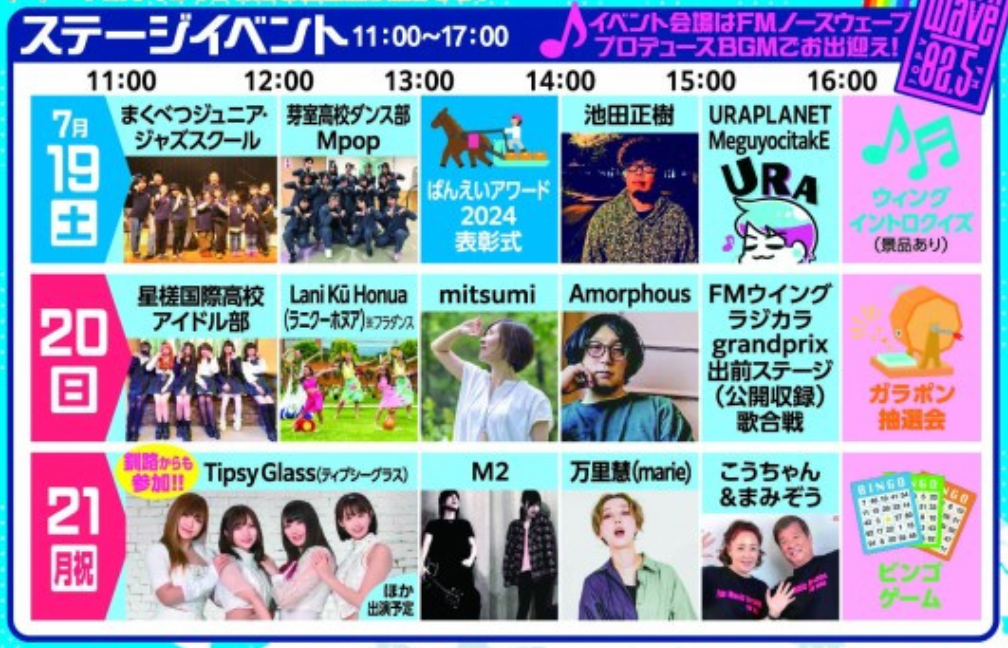 食と音楽で、夏のはじまりを盛り上げよう!夏休みシーズンのスタートを飾る「ばんえいサマーMUSIC2025」が、今年も帯広競馬場で開催されます。FM WINGやFMノースウェーブと連携した音楽ステージに加え、高校生バンドやダンス、人気パフォーマーの出演も盛りだくさん。おいしいグルメのキッチンカーも多数登場し、家族で楽しめる3日間の特別イベントです。