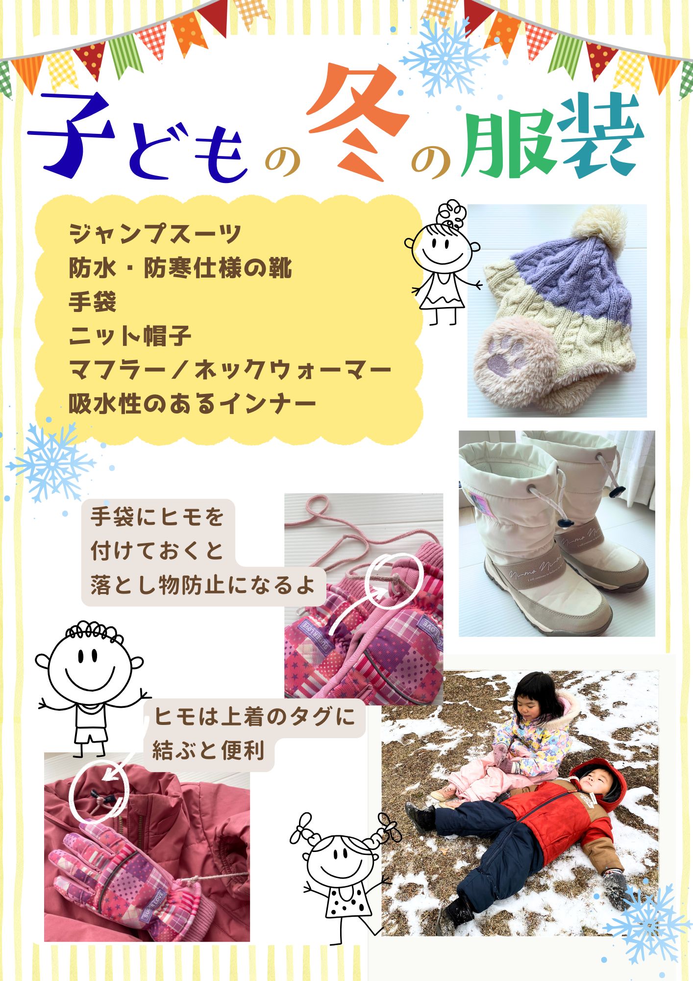 子どもは大人よりも寒さを感じやすく、また雪や汗で服が濡れやすいため、着替えなどの準備をしておくのがおすすめです。