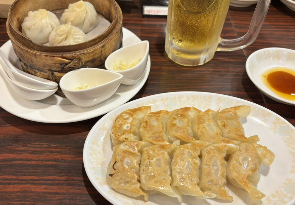 看板メニューは、肉汁たっぷりの餃子と熱々小籠包。地元食材を使ったこだわりの料理は、サイドメニューからデザートまでどれも魅力的で、つい目移りしてしまいます。