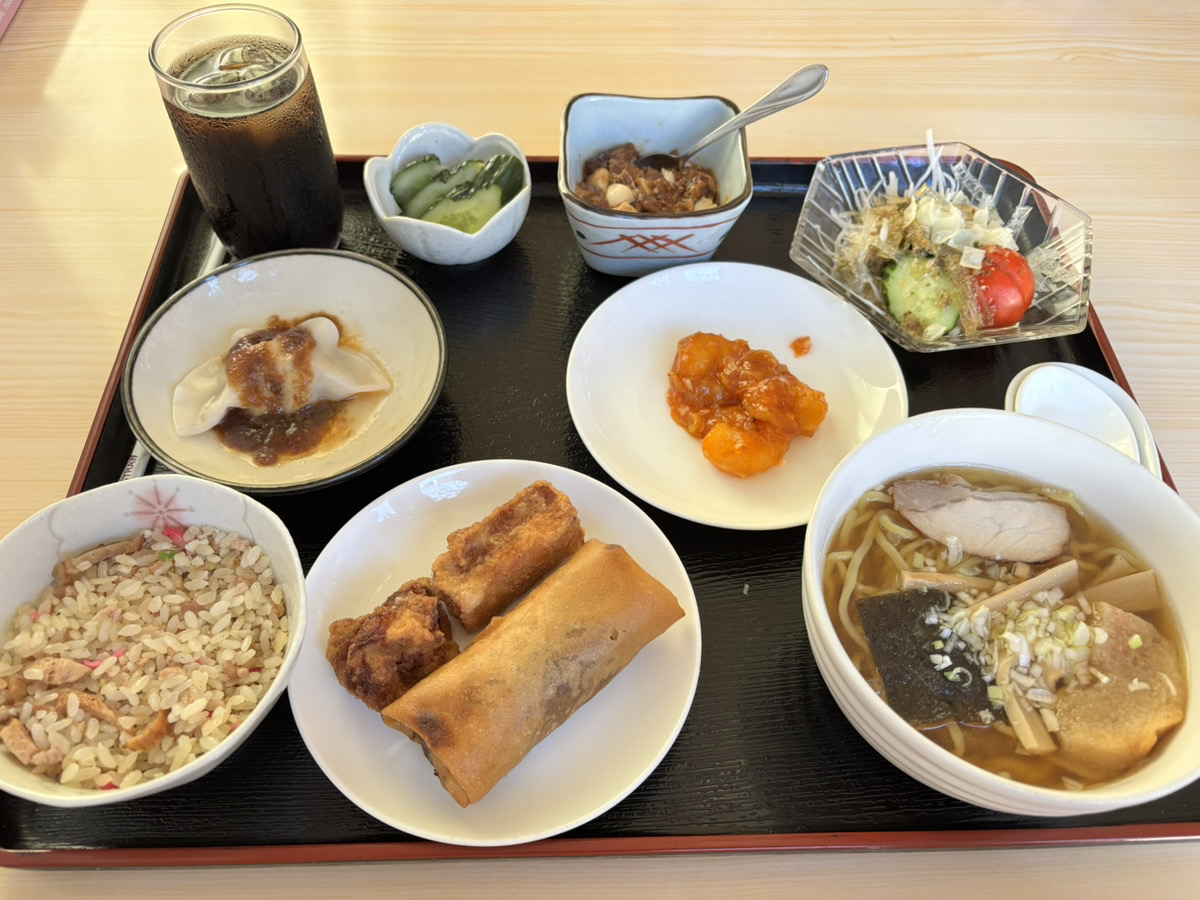 前菜・サラダ・エビチリ・水餃子・麻婆豆腐・春巻・唐揚げ・ラーメン・チャーハン・コーヒーまたはシャーベットと、内容は盛りだくさん。それでいて1,200円とコスパ抜群です!