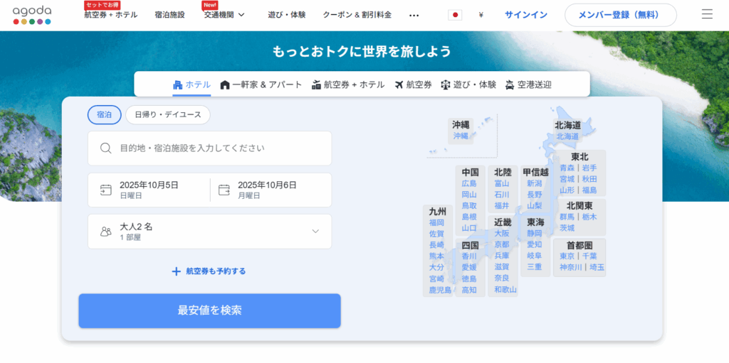 出張・旅慣れならAgodaが“基準”、でも“最速・最小手間”は日本の旅行会社に丸投げが正解。 海外ホテルの取り方は、大きく2本道 ①スピードと安心を最優先するなら、日本の旅行会社(店舗/公式サイト)に依頼。対面相談・日本語サポート・インボイス対応で、出張でも迷わない。 ②料金/在庫の幅で攻める...