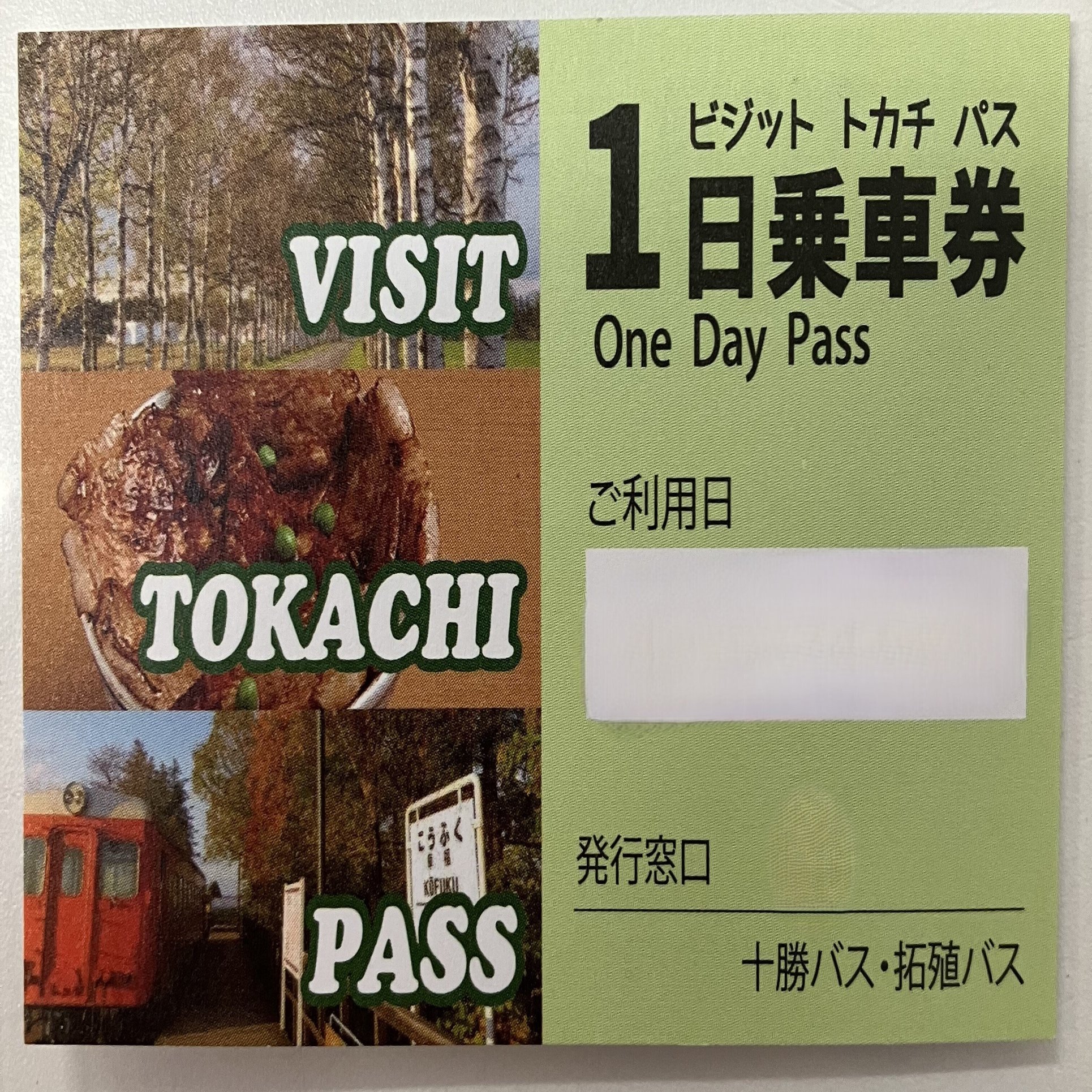 十勝に観光で訪れた方々を対象に、ばんえい競馬場、十勝川温泉、然別湖、ぬかびら源泉郷、旧国鉄幸福駅・愛国駅など十勝の魅力を満喫できる、お得な路線バスの乗り放題パス【VISIT TOKACHI PASS】を発売しております。 【対象者】 日本国内にお住まいで、十勝に観光に訪れた方 ※十勝総合振興局管内にお住まいの方につきましては発売対象外となります。 あらかじめご了承ください。 【対象路線】 北海道拓殖バス および 十勝バスの十勝管内全路線(帯広空港連絡バス含む) ※都市間高速バス、定期観光バス、各市町のコミュニティバスはご乗車いただけません。 【販売期間】 通年発売 【販売場所】 帯広駅バスターミナル(北海道拓殖バス窓口、十勝バス窓口) 【種類・金額】 1日券 2,000円 [小学生1,000円] (令和5年4月1日より価格改定) 2日券 3,000円 [小学生1,500円] (令和5年4月1日より価格改定) ※購入日のみ利用可能。2日券は購入日とその翌日に利用可能。 【利用方法】 ①販売窓口で申込書に必要事項を記入しパスを購入(払戻し・再発行不可) ※購入時に現住所がわかる身分証明書(運転免許証・マイナンバーカード等)と あわせて、十勝にお越しの際の乗車券や航空券等(モバイルでも可)を確認 させていただきます。 ②路線バスに乗車 ※利用区間調査のため、必ず整理券をお取りください※ ③降車時に整理券を運賃箱に投入し、パスの日付の書かれた面をしっかりと乗務員へ お見せください。 ★1枚のパスを複数人で利用することは出来ません。 ●詳しくはコチラ(PDFファイル)