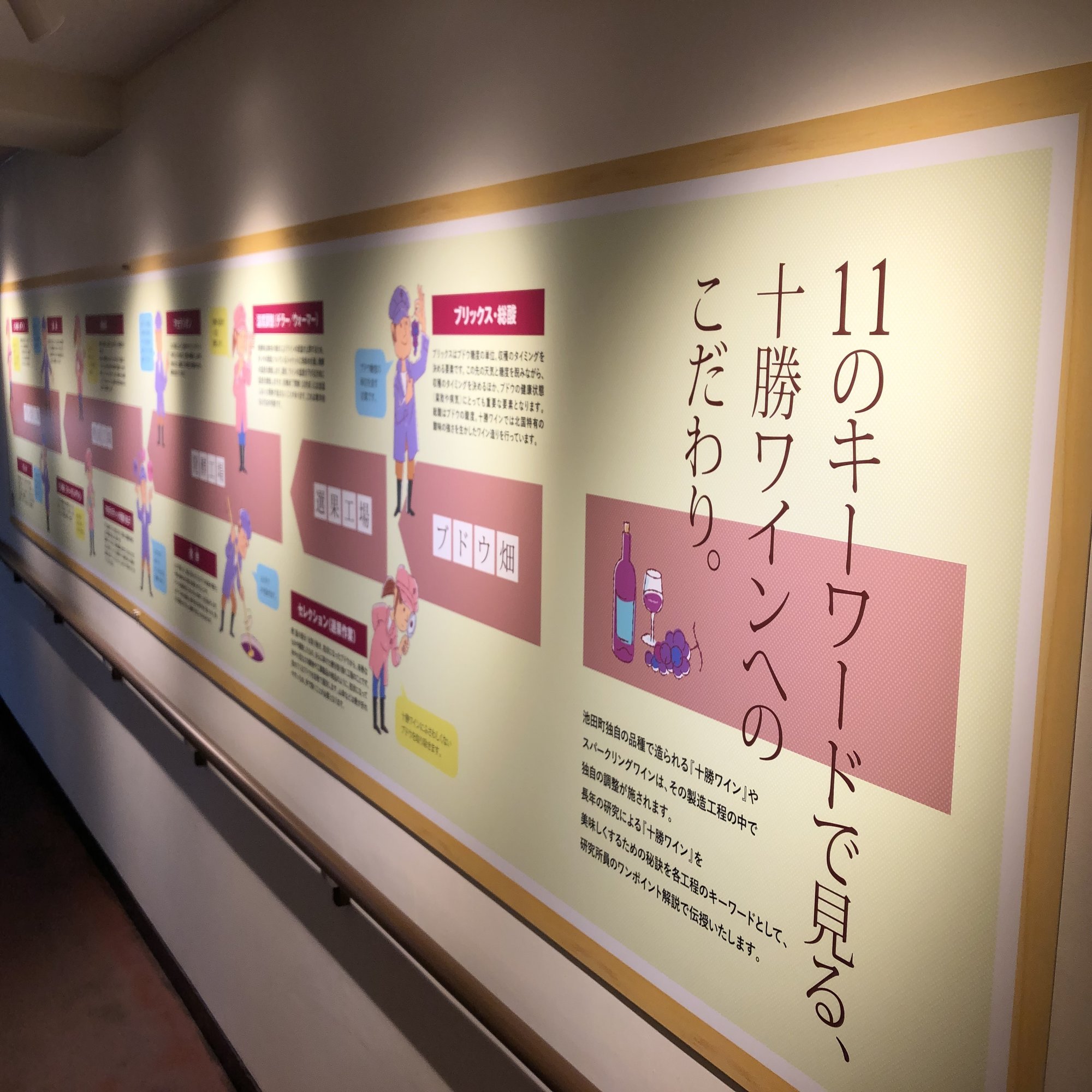 見学コース入口を入ってすぐのところには「廊ミュージアム」があり、十勝ワインのこだわりや製造工程などの資料を見ることができます。