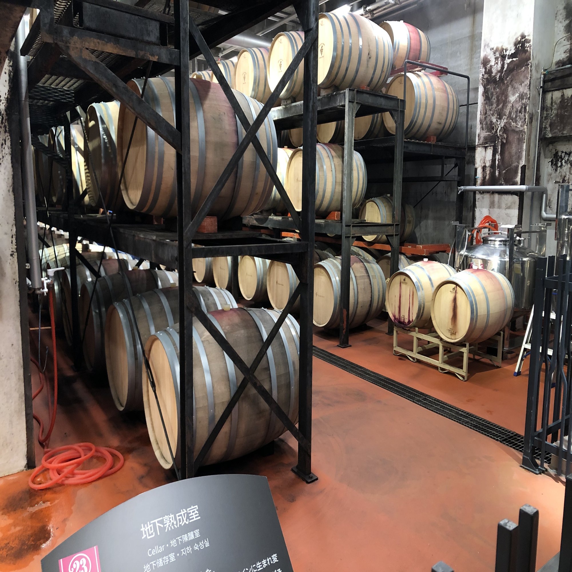 B2Fの地下熟成室では、実際にブランデーを熟成している樽も間近で見学できました。